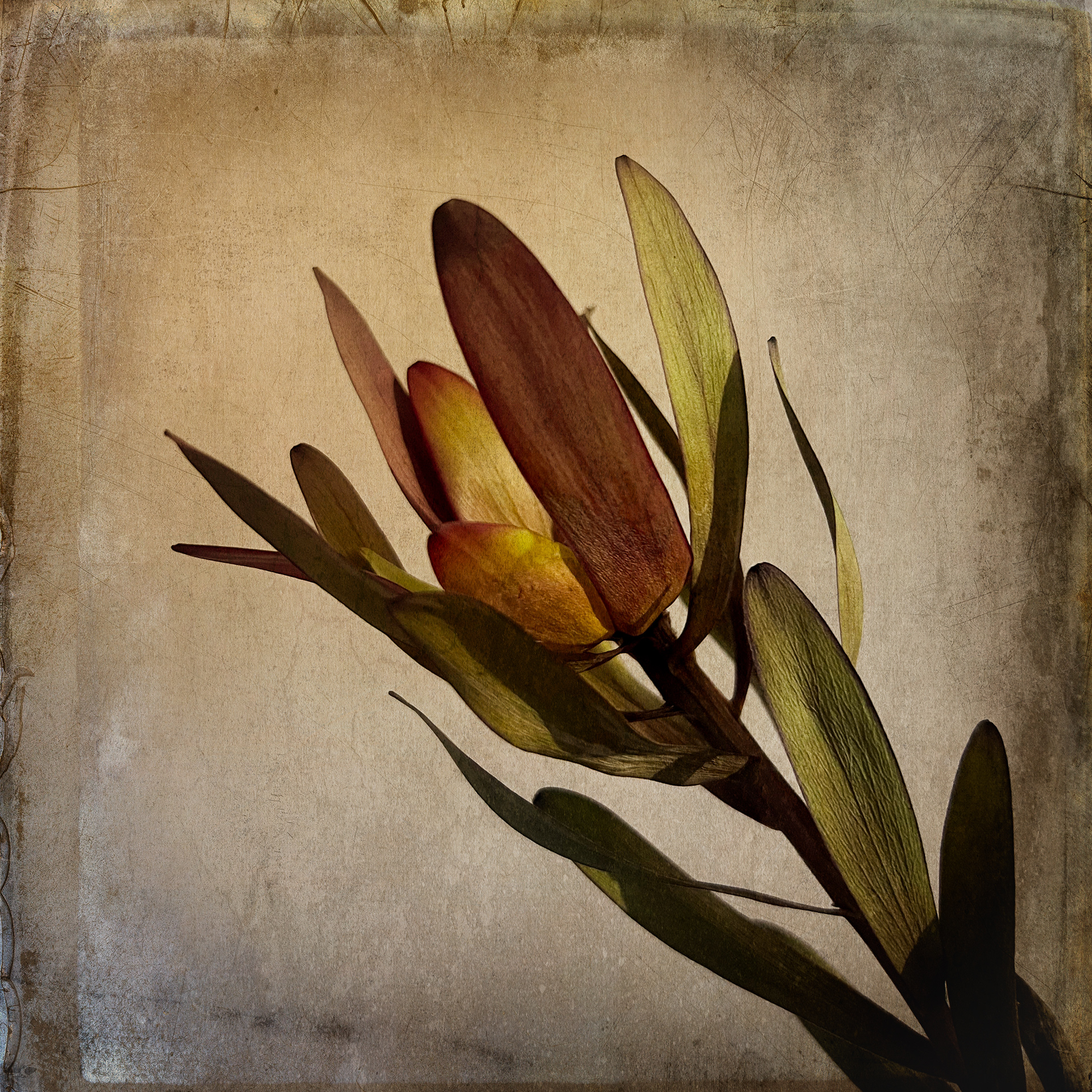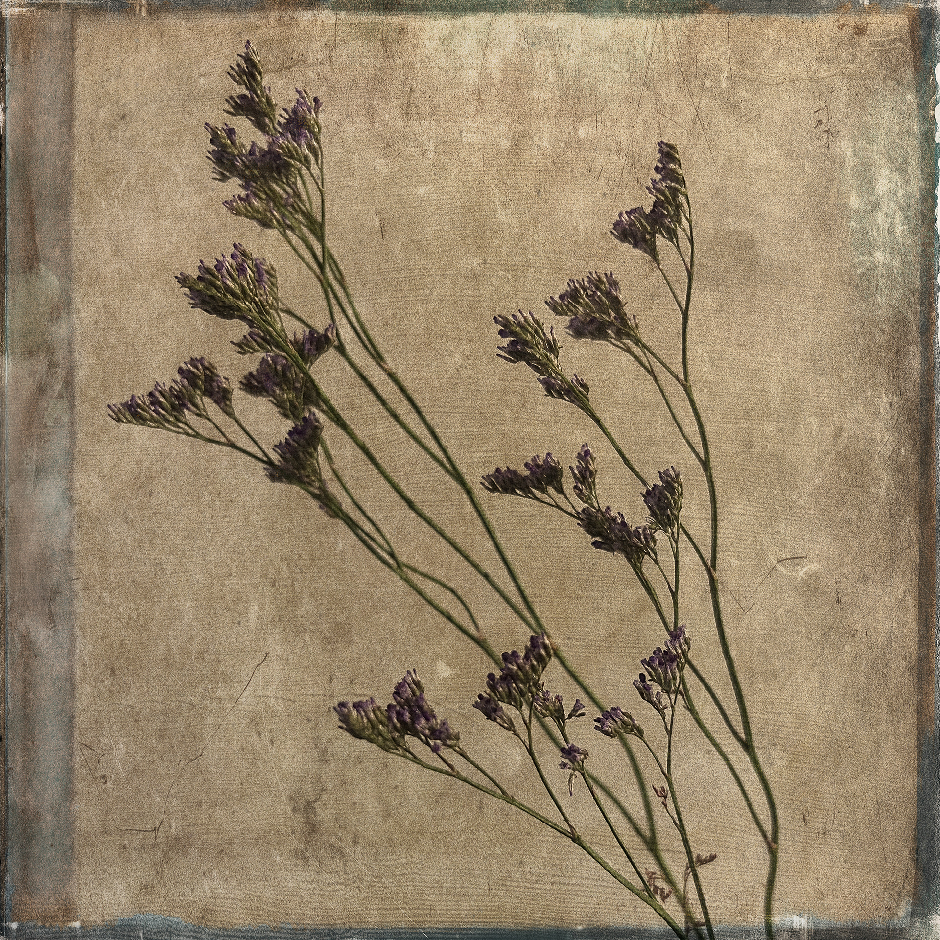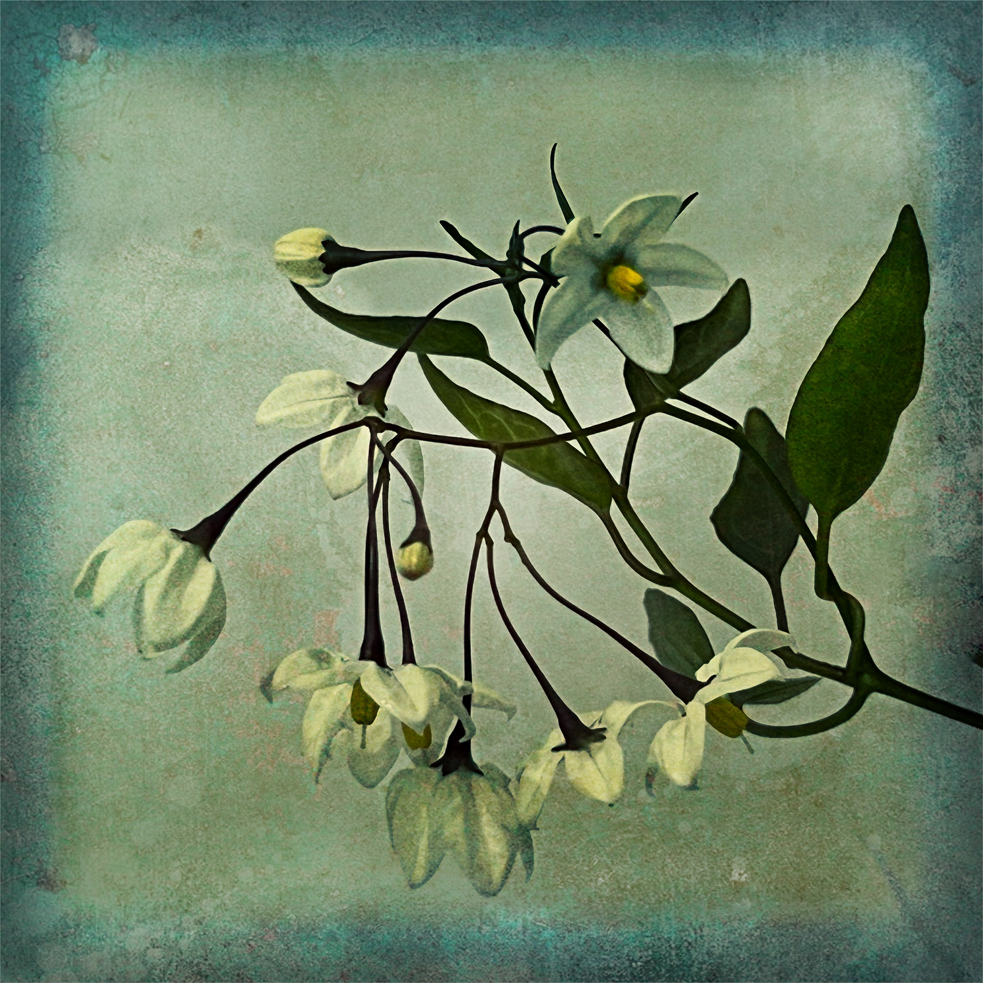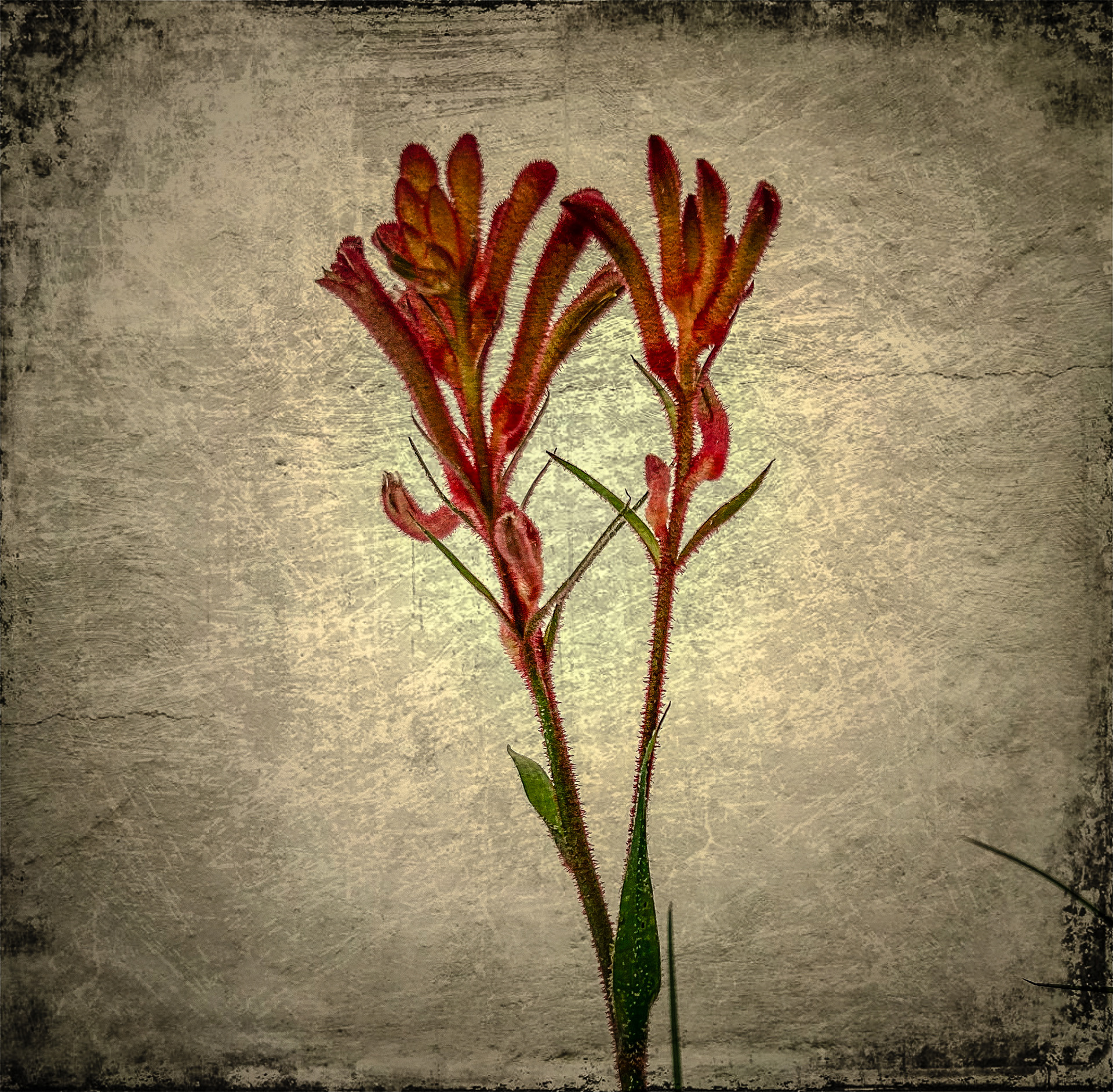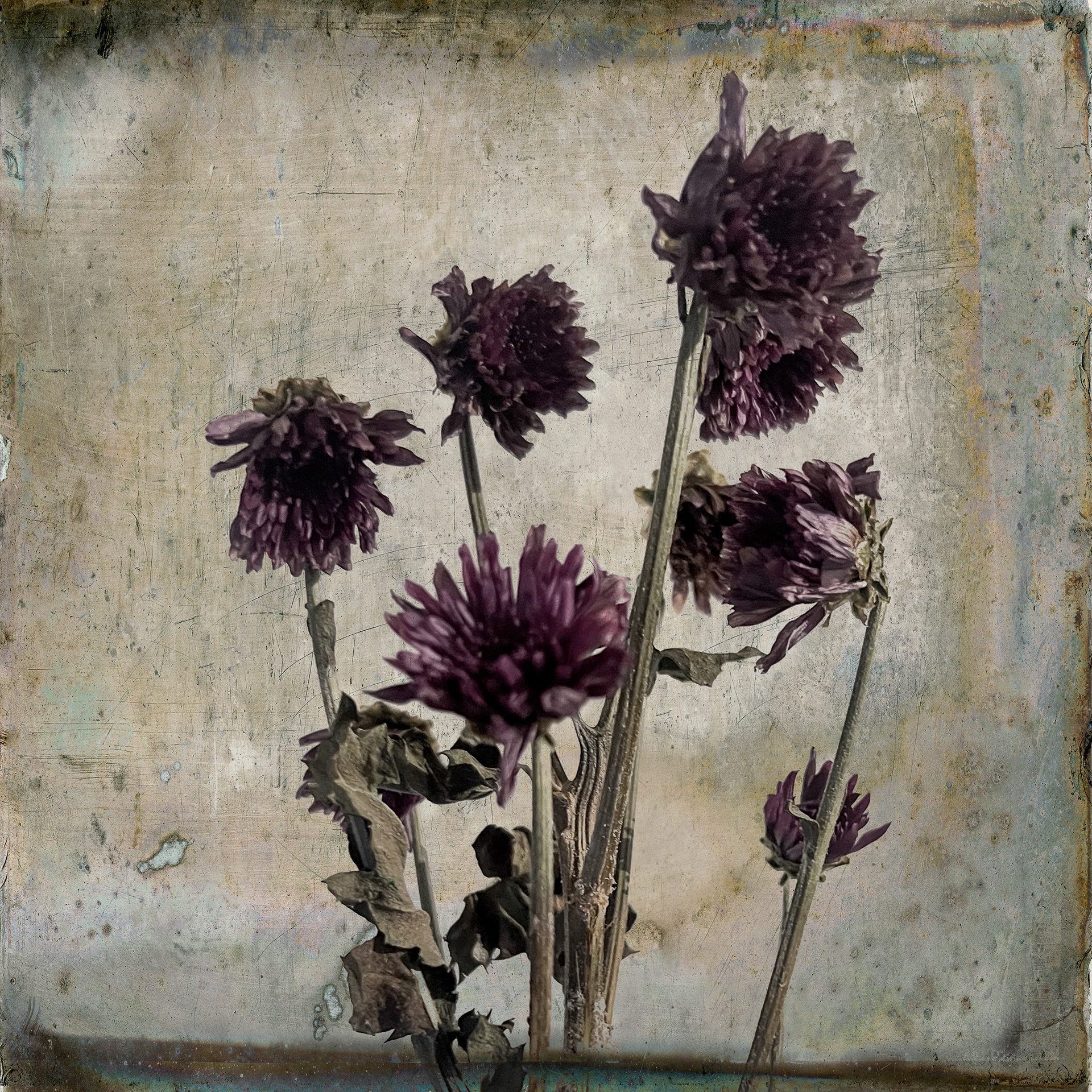 A collection of botanical images featuring the delicacy of floral images against the harsh grunge background.